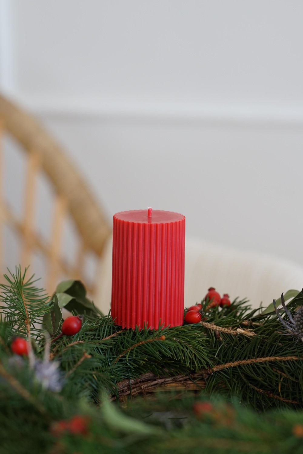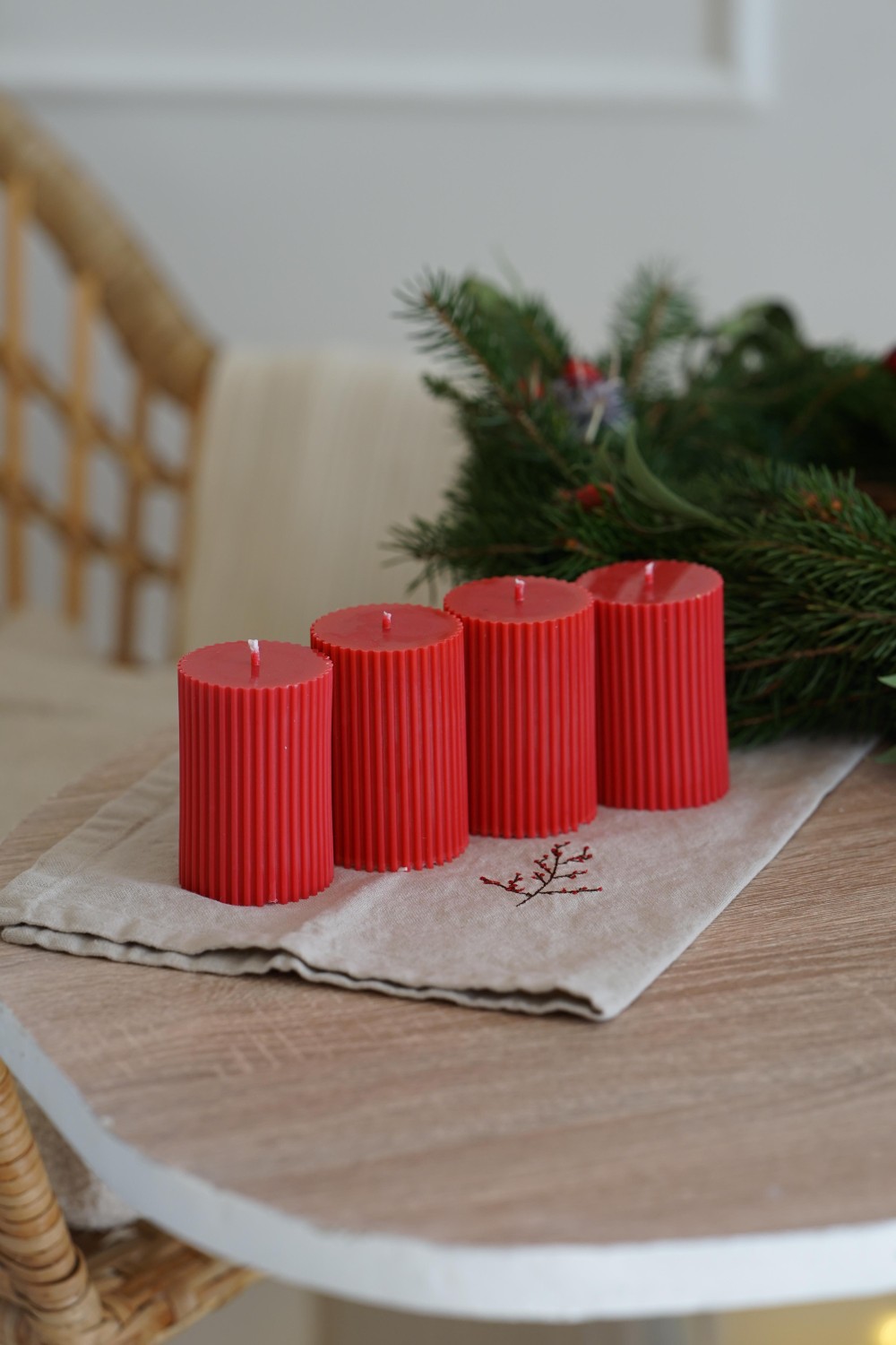 Užijte si kouzlo adventního času s našimi ručně vyrobenými svíčkami z čistého sójového vosku. Svíčka Amari v krásném červeném odstínu má kuželovitý tvar s jemnými proužky po celém obvodu. Sada obsahuje 4 kusy svíček ze sójového vosku do Vašich adventních věnců a svátečních aranžmá.