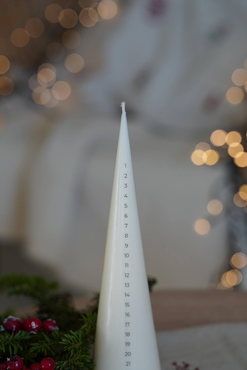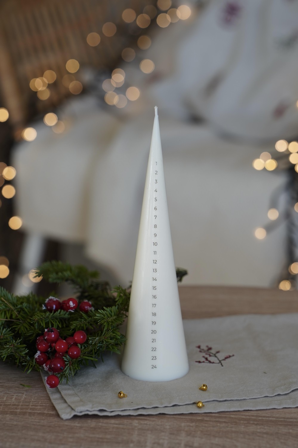 Odpočítávejte si dny do Vánoc se svíčkou Adventní Bodlinka, která připomíná minimalistický stromeček. Svíčka je ručně odlitá ze směsi sójového a bílého včelího vosku. Každý den můžete zapálit svíčku a necháte ji hořet až po další číslo. Tento klidný rituál vám pomůže zpomalit uprostřed předvánočního shonu a užít si kouzelné okamžiky očekávání. Čísla od 1 do 24 jsou jemně vyznačena po celé délce svíčky.