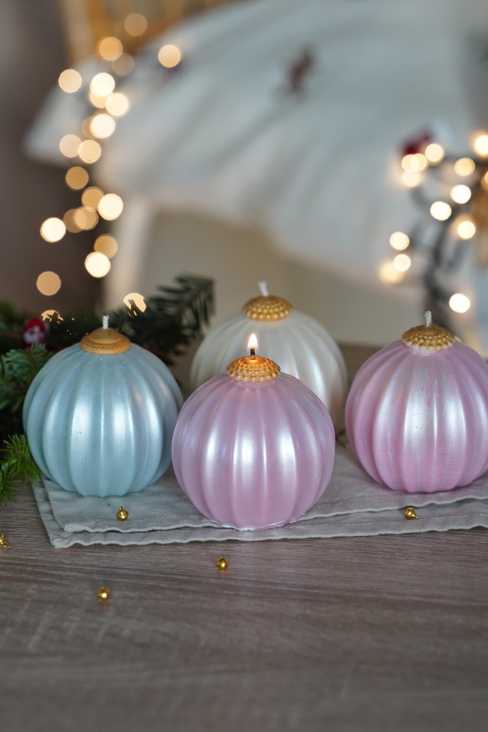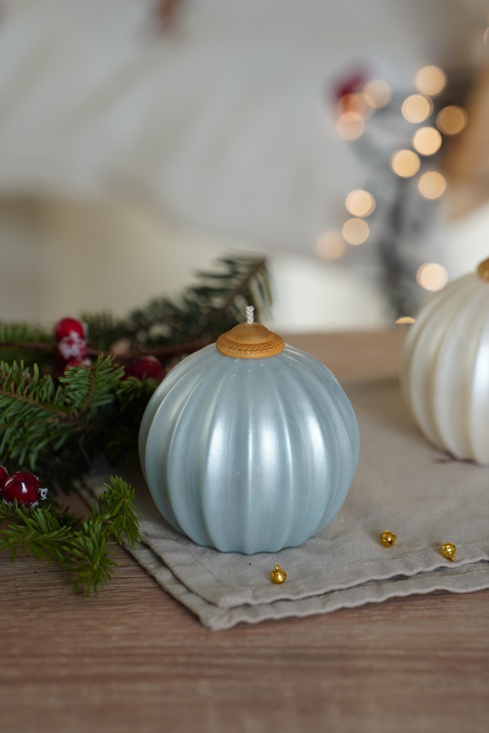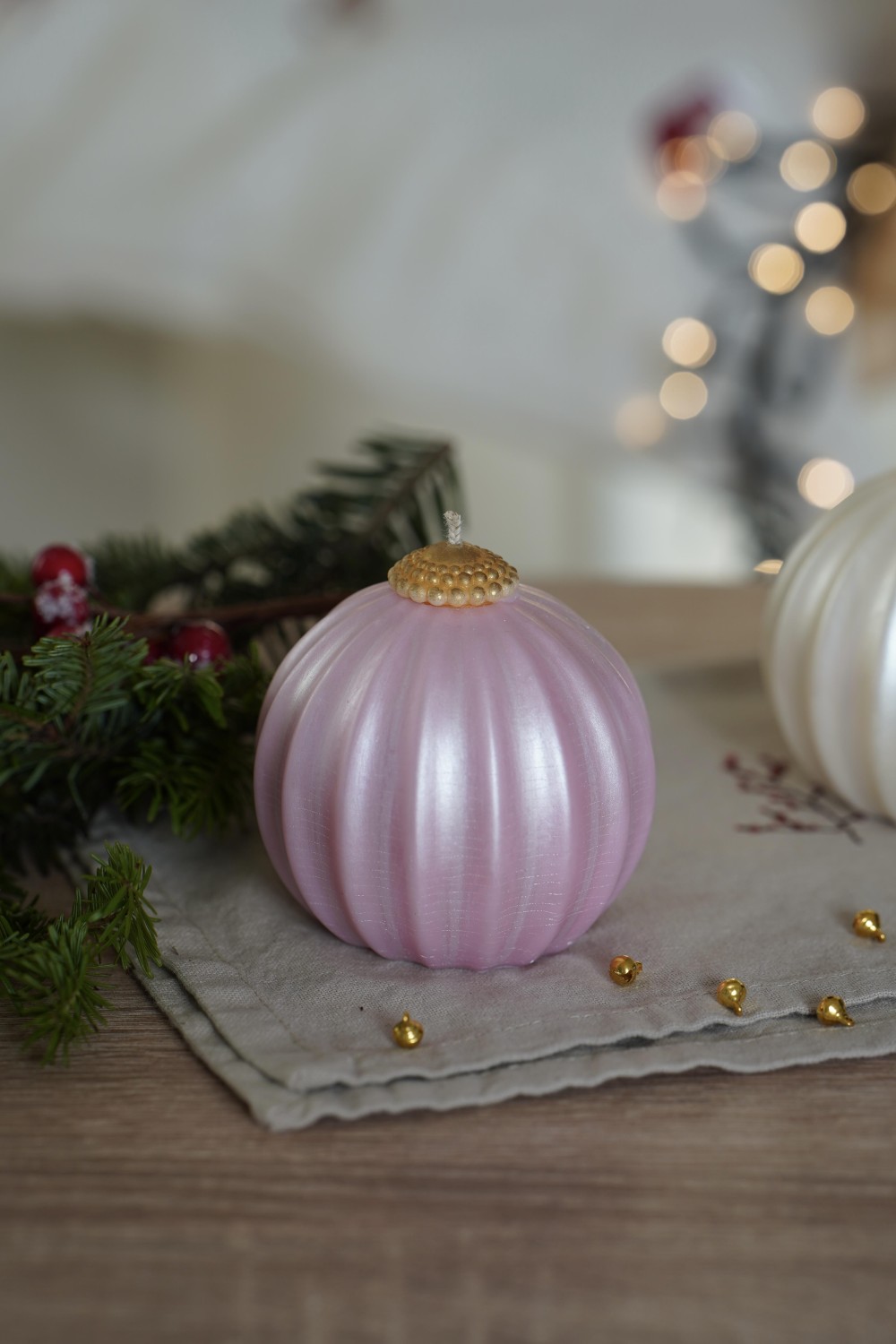 Svíčka Ozdoba Vánoc vnese do domova kouzlo zimních večerů i půvab svátečních chvil. Její tvar je inspirovaný vánoční baňkou, která připomíná dětství, teplo domova a chvíle, kdy se svět kolem zpomaluje a my nacházíme klid. Každá svíčka je ručně odlévaná ze sójového vosku a povrch svíčky je zdobený perleťovým odstínem. Svíčka Ozdoba Vánoc je dostupná ve třech odstínech – světle růžové, světle modré a bílé. Dohromady tvoří jemnou hru barev a evokující klidnou zimní krajinu.
