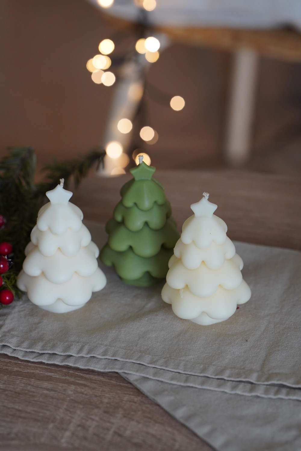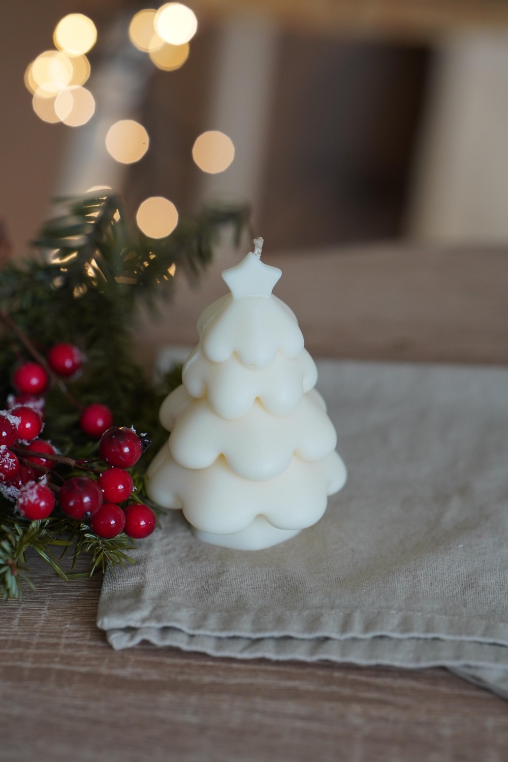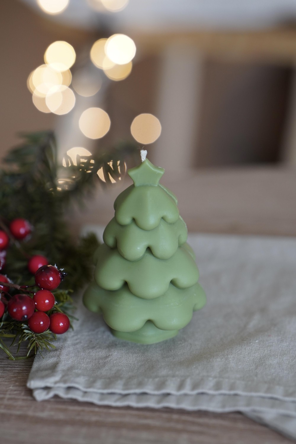 Nechte se okouzlit naší svíčkou ve tvaru stromečku s hvězdou. Svíčka je ručně odlitá ze sójového vosku v bílém nebo olivově zeleném odstínu. Svíčka stromečku je krásný dárek pro vaše blízké nebo jako dekorace vašeho svátečního stolu.