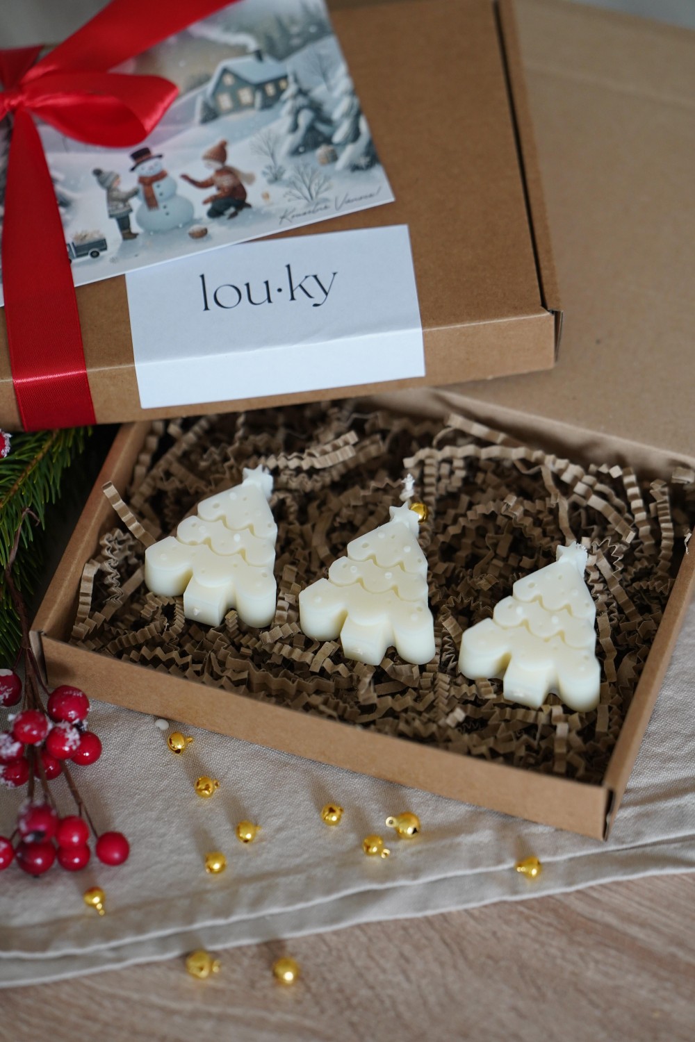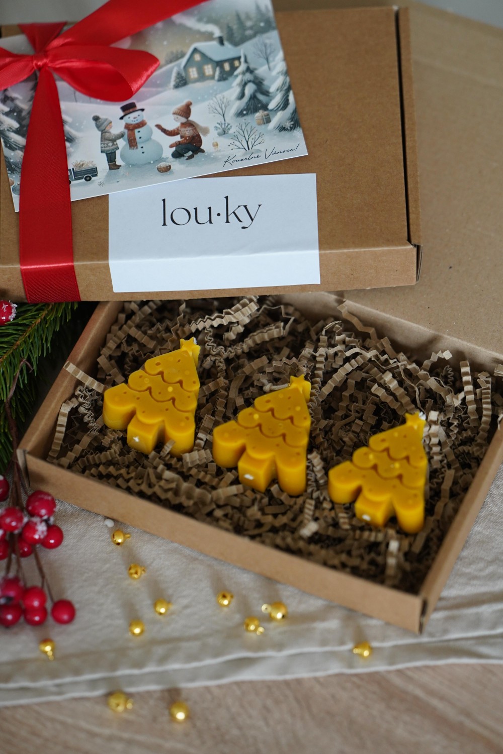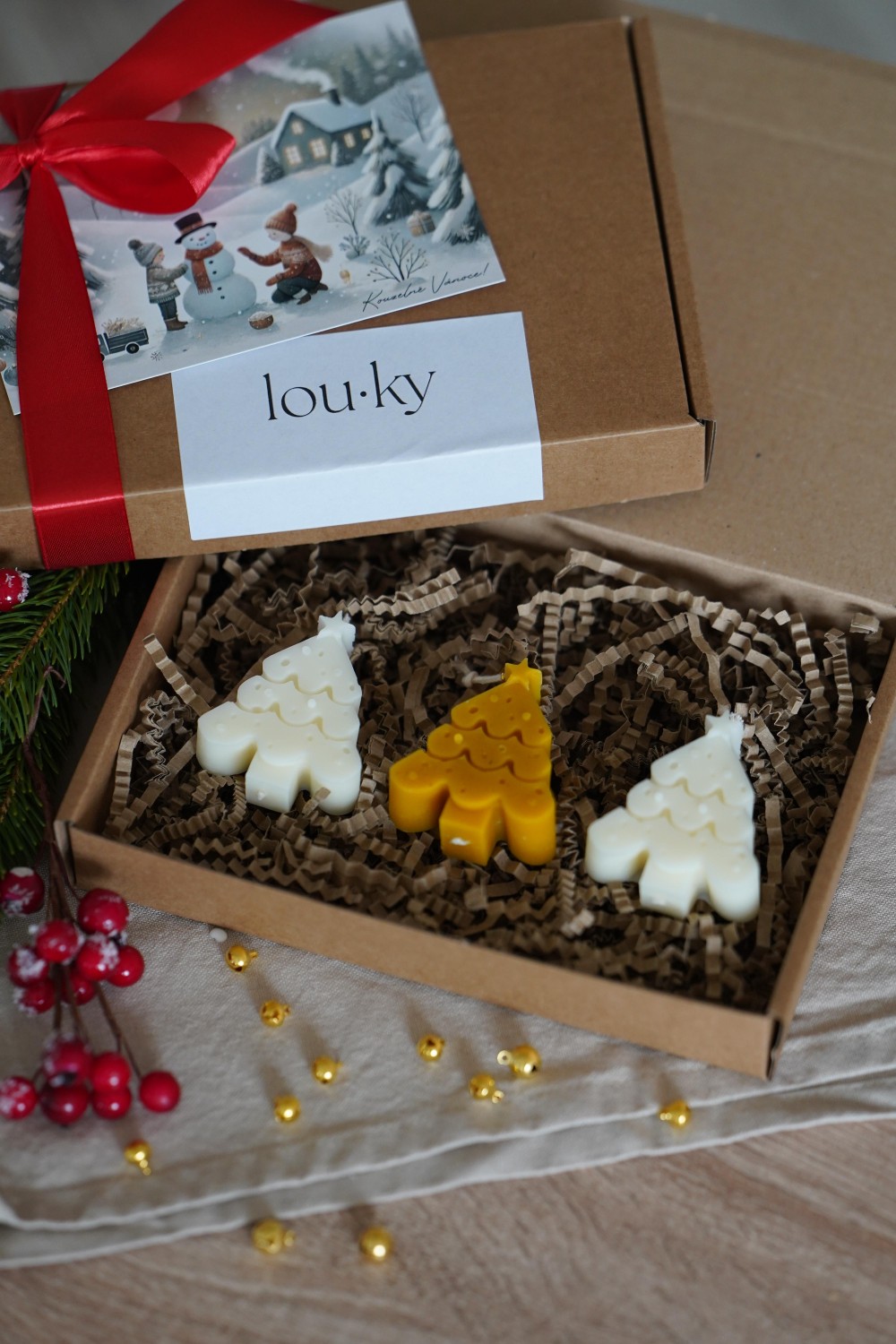 V sadě naleznete 3x stromek ve velikosti 6 x 5 x 3 cm | hmotnost: 1 ks 31 g vosku