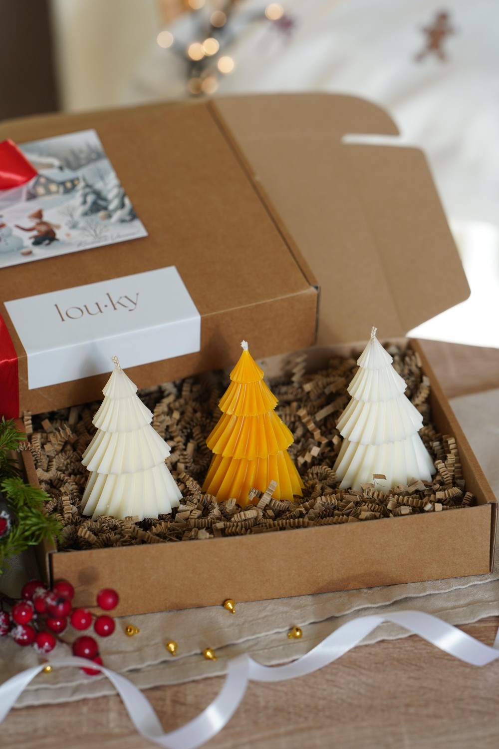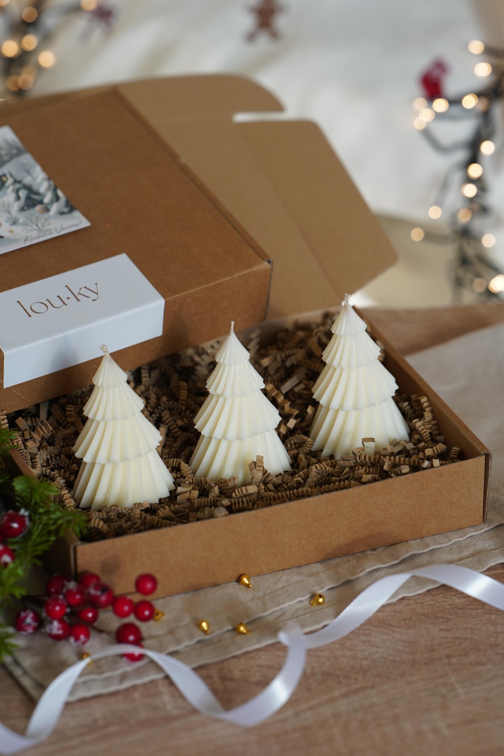 Sada tří malých tančících stromečků je ideální způsob jak do svého domova přinést vánoční atmosféru. Sada svíček je elegantní doplněk pro Vaše vánoční stolování nebo jako decentní dárek pro Vaše blízké. Svíčky jsou zabalené v papírové dárkové krabici se stuhou viz. fotky. Stromečky si můžete vybrat z čistého sójového nebo včelího vosku.