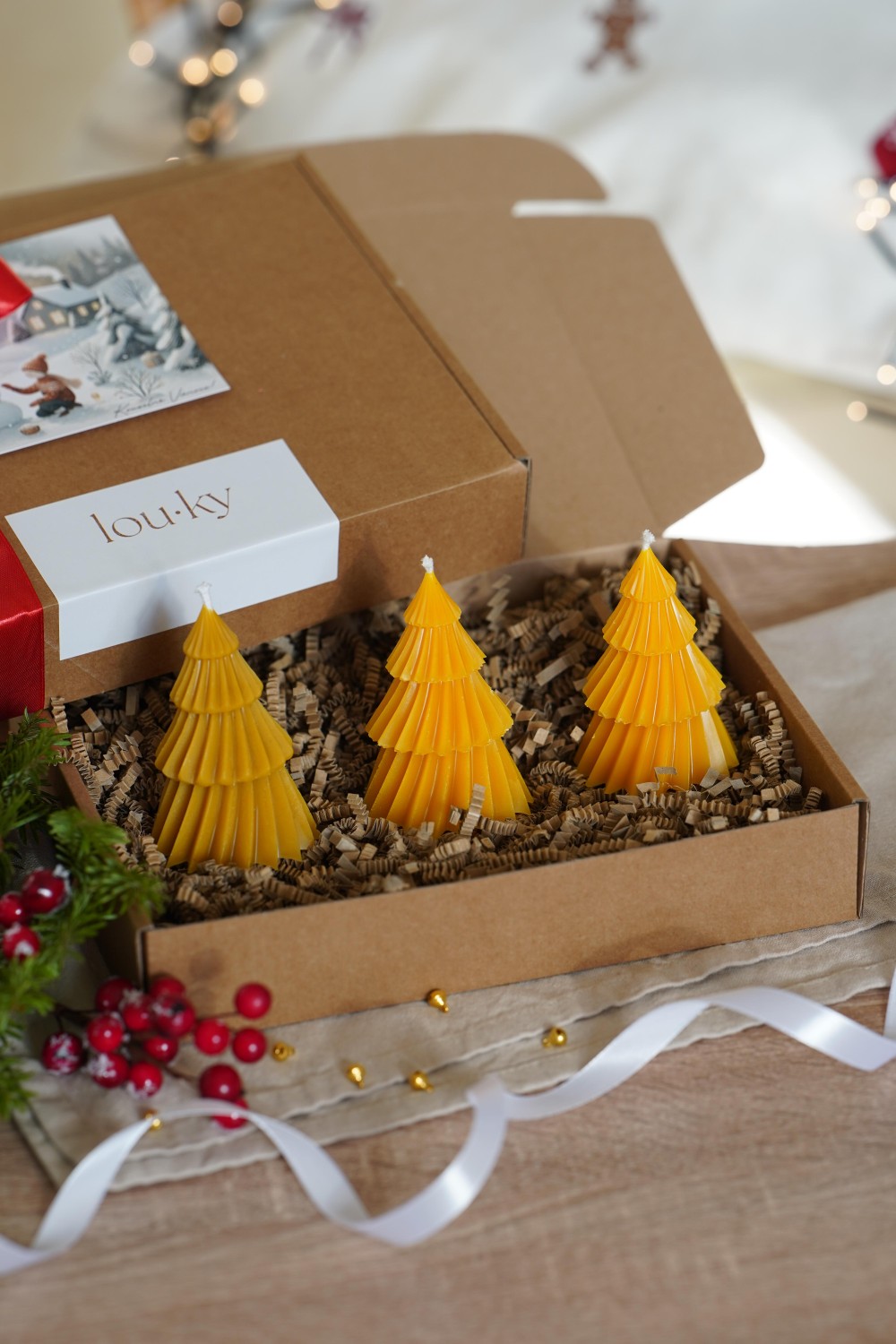 V sadě naleznete 3x malý točený stromek ve velikosti 9 x 5,5 cm | hmotnost: 1 ks 69 g vosku
