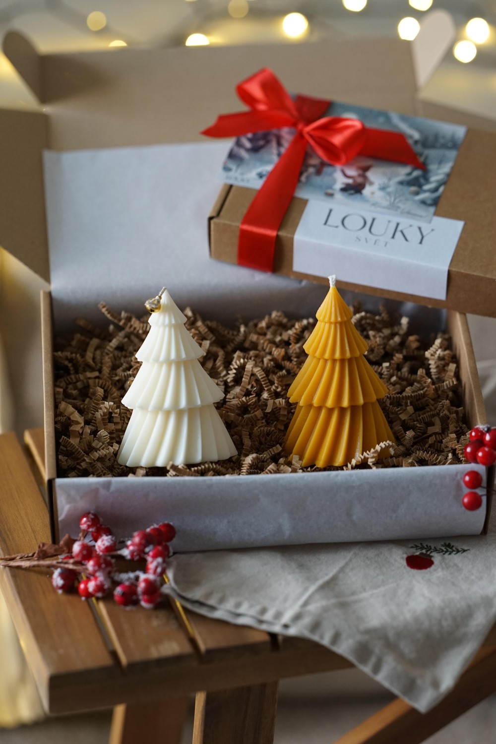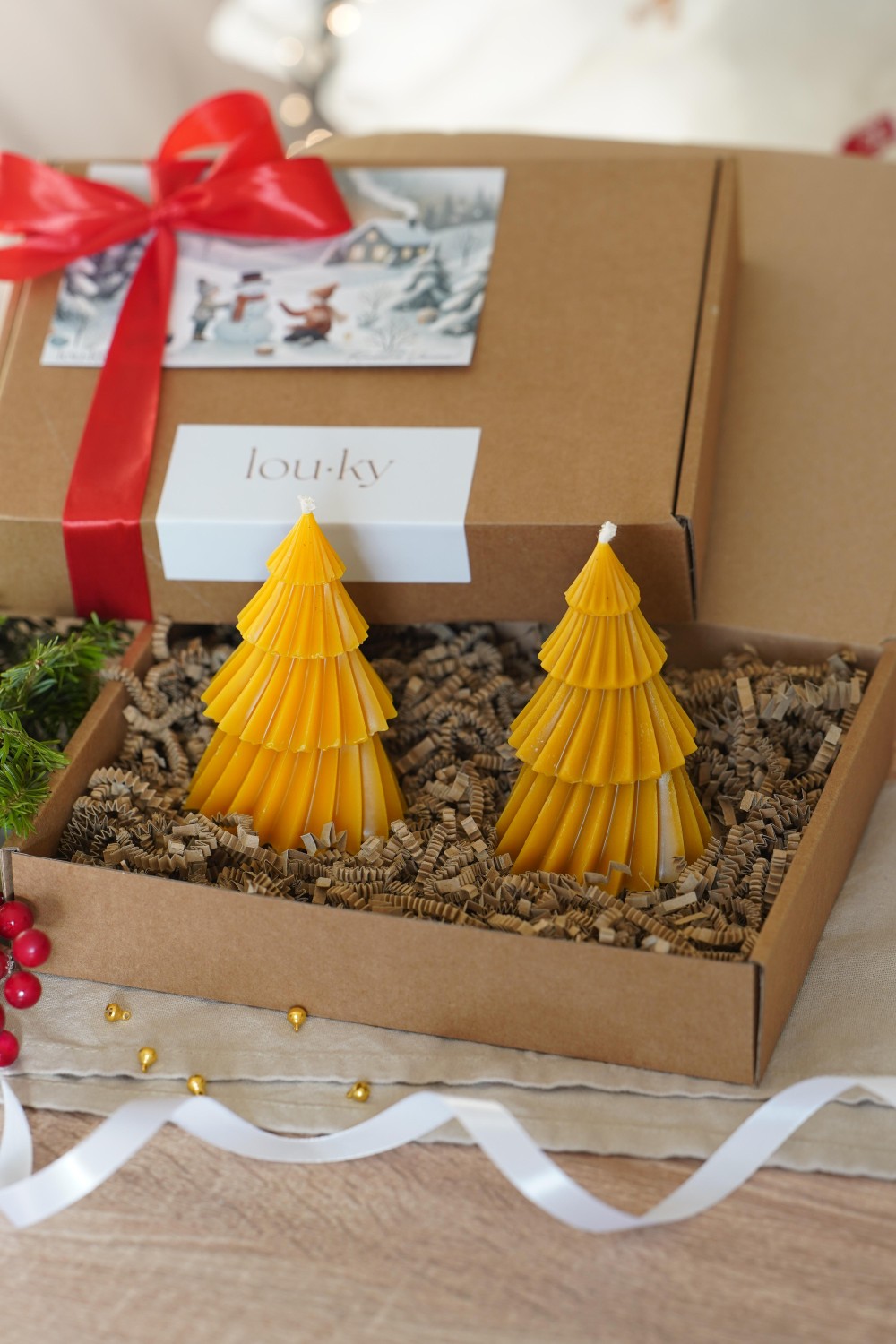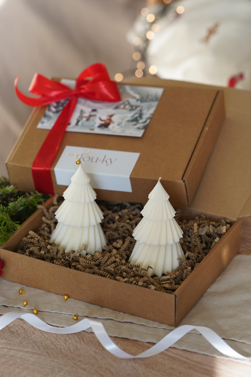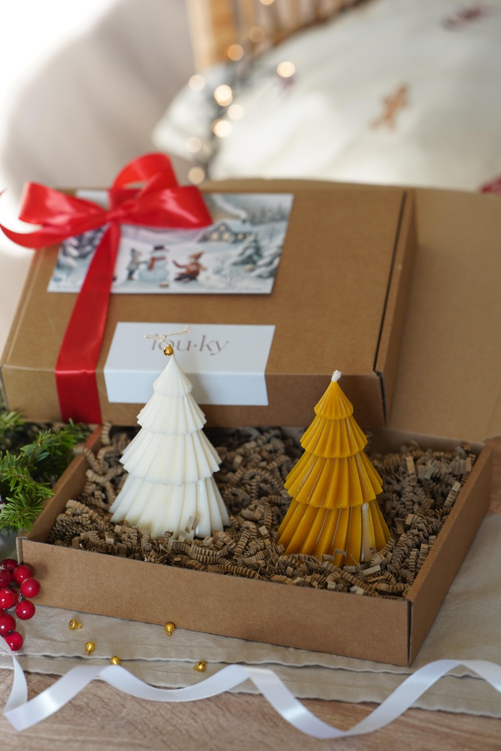 Sada svíček se skládá ze dvou velkých tančících stromečků. Svíčky jsou ideální způsob jak do svého domova přinést vánoční atmosféru. Sada stromečků je elegantní doplněk pro Vaše vánoční stolování nebo jako dárek pro Vaše blízké. Svíčky jsou zabalené v papírové dárkové krabici se stuhou viz. fotky. Stromečky si můžete vybrat z čistého sójového nebo včelího vosku.