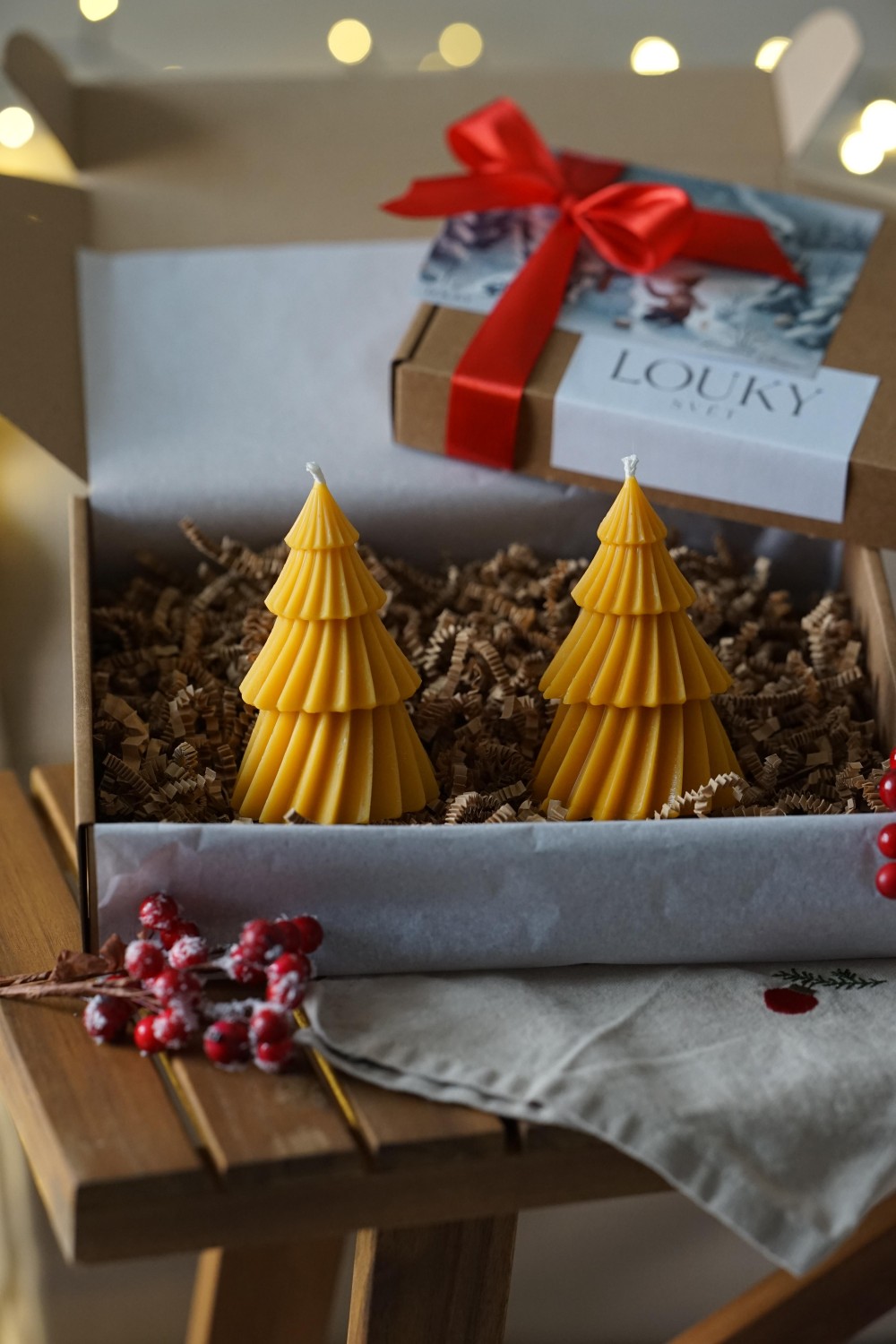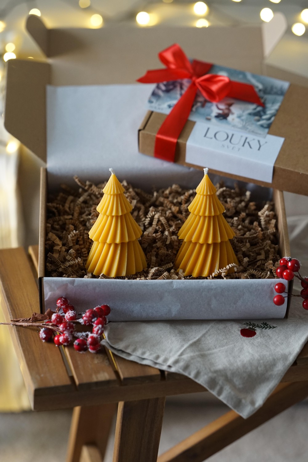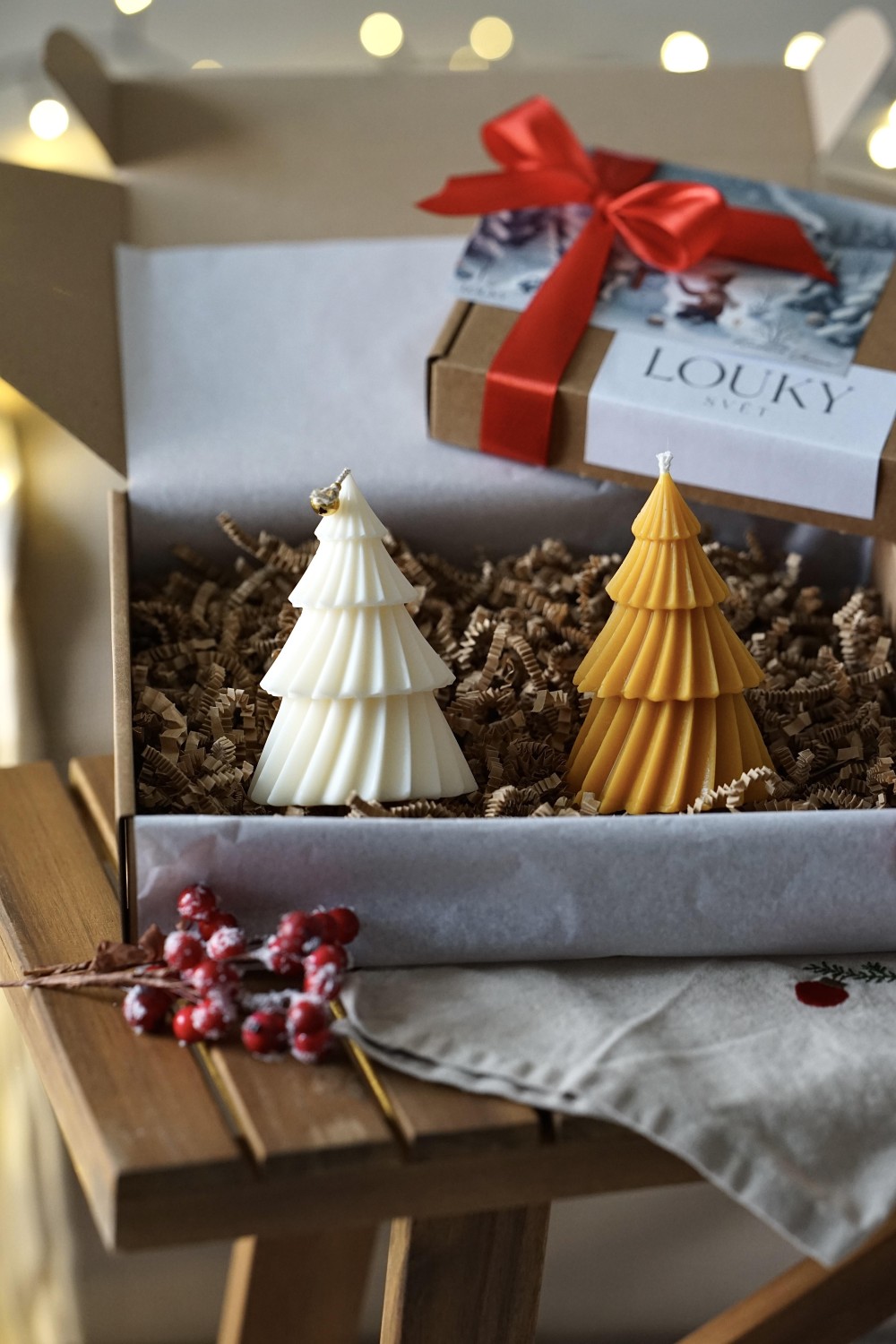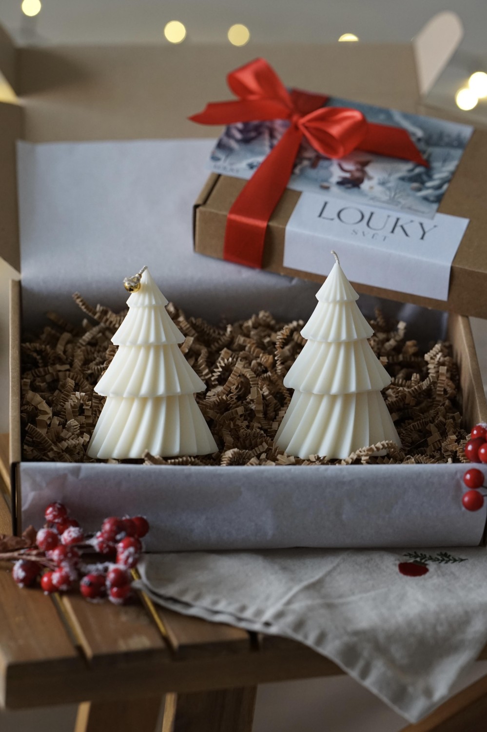 Sada svíček se skládá ze dvou velkých tančících stromečků. Svíčky jsou ideální způsob jak do svého domova přinést vánoční atmosféru. Sada stromečků je elegantní doplněk pro Vaše vánoční stolování nebo jako dárek pro Vaše blízké. Svíčky jsou zabalené v papírové dárkové krabici se stuhou viz. fotky. Stromečky si můžete vybrat z čistého sójového nebo včelího vosku.