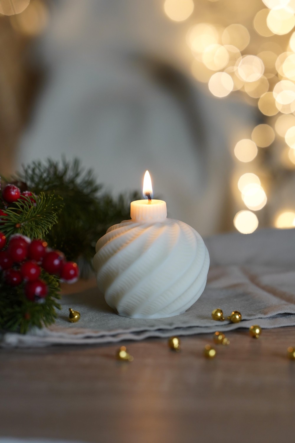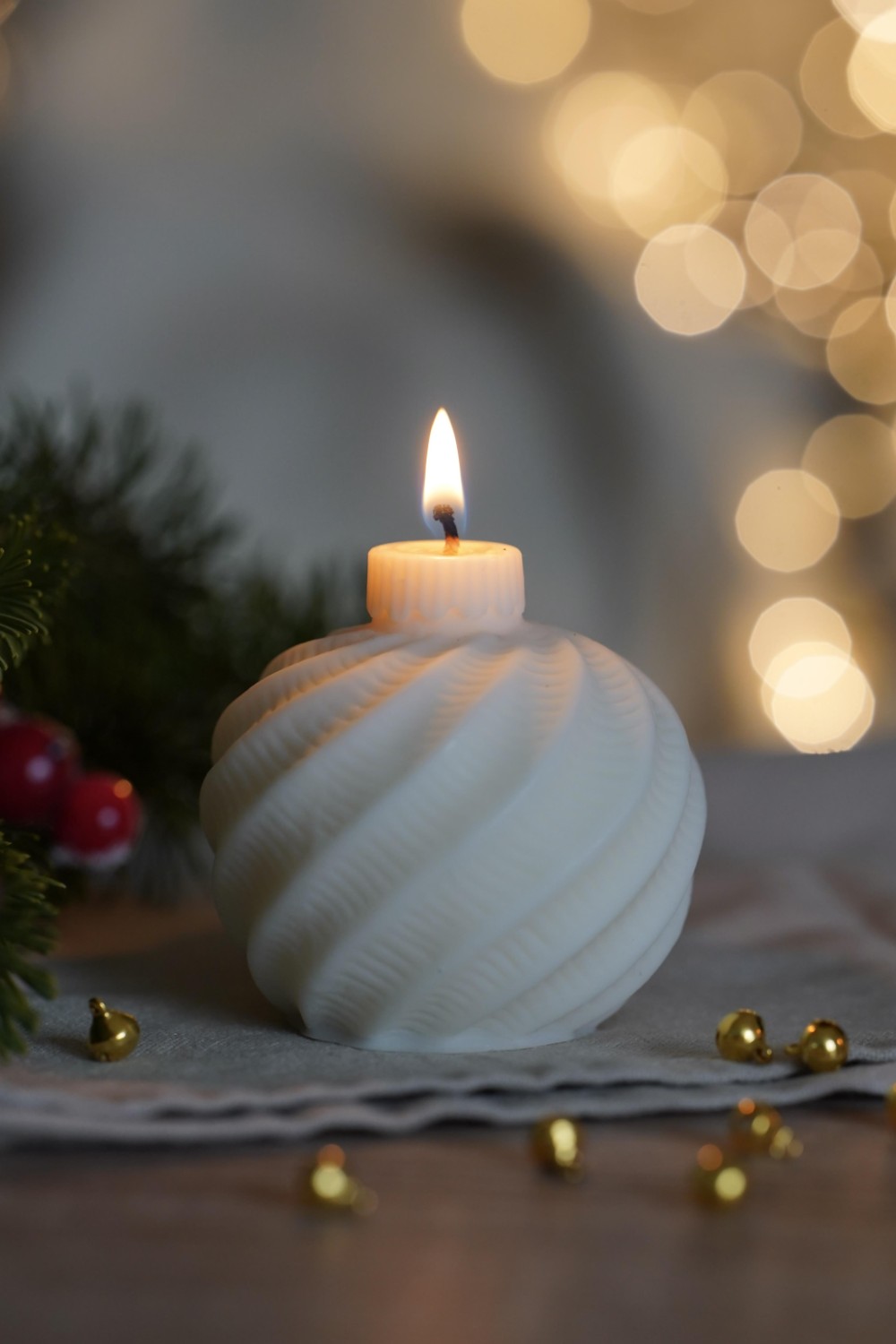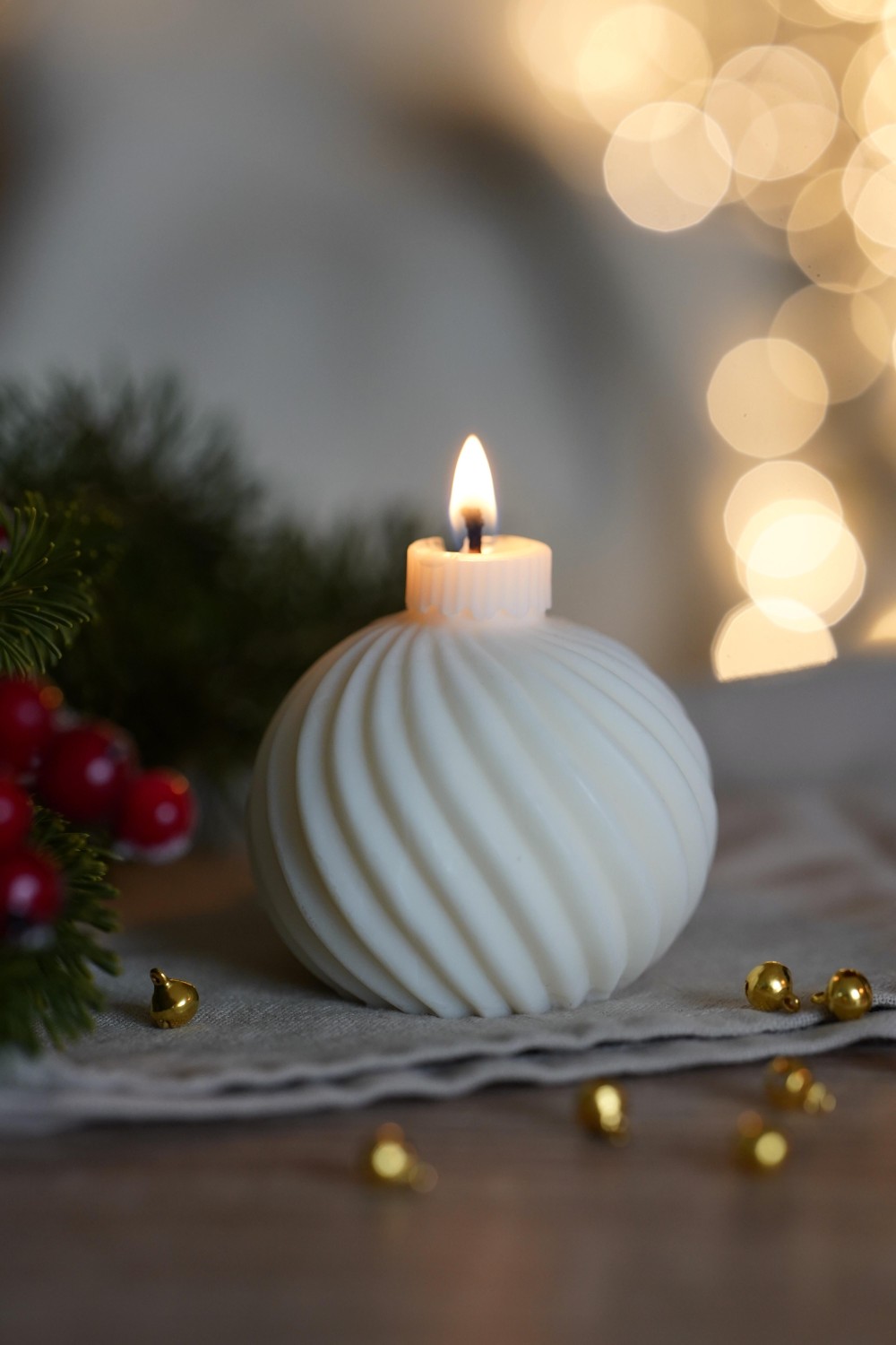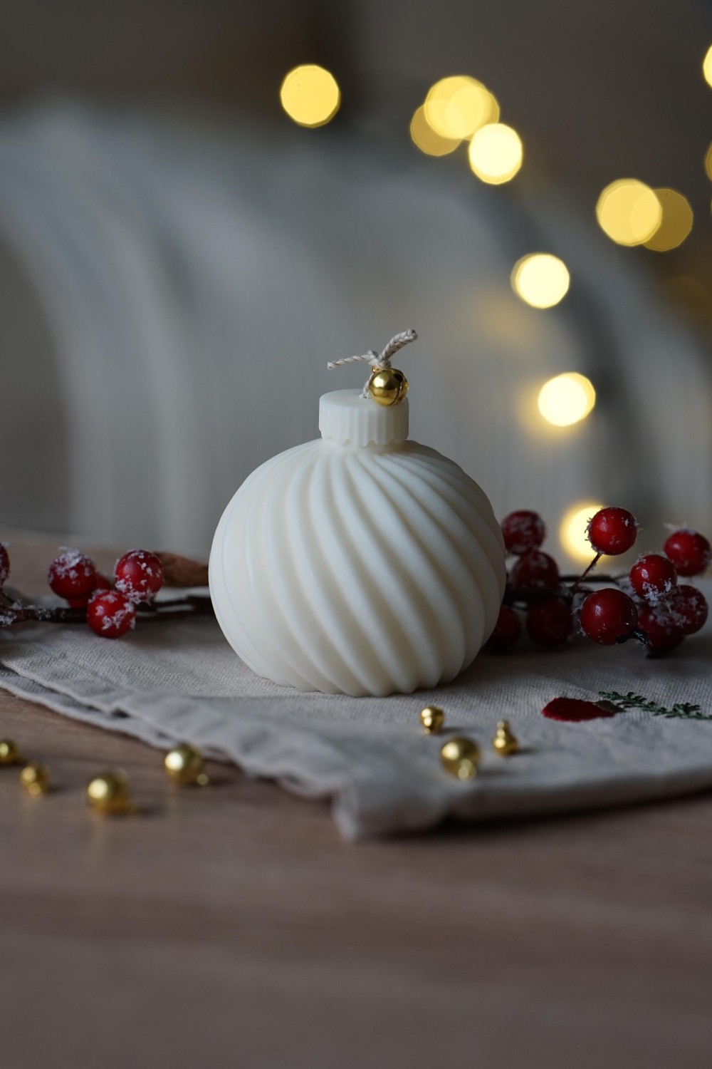 Objevte svíčku ve tvaru tradiční vánoční baňky, která dodá vašemu domovu kouzelnou atmosféru. Svíčka je odlitá ručně ze sójového vosku s jemně točeným dekorem na povrchu baňky. Svíčka vánoční ozdoby může být krásným dárkem pro vaše blízké nebo jako dekorace vašeho svátečního stolu.