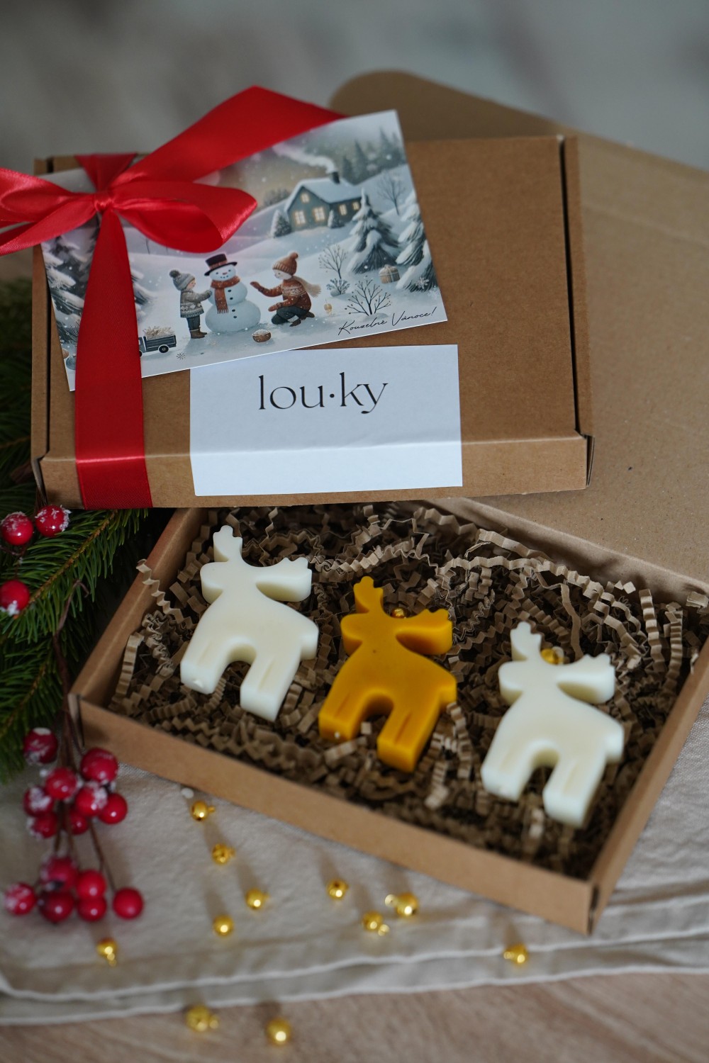 Sada tří sobů je ideální způsob jak do svého domova přinést vánoční atmosféru. Sada svíček je elegantní doplněk pro Vaše vánoční stolování nebo jako dárek pro Vaše blízké. Svíčky jsou zabalené v papírové krabici se stuhou viz. fotky. Svíčky sobů si můžete vybrat ze směsi sójového a bílého včelího vosku nebo žlutého včelího vosku.